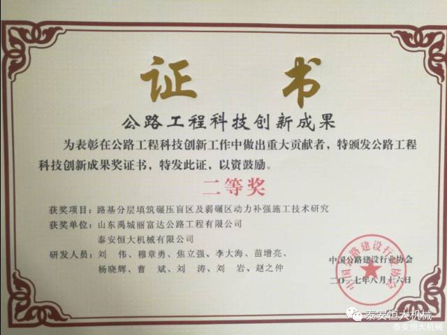 熱烈慶祝泰安恒大機(jī)械有限公司榮獲山東公路學(xué)會科學(xué)技術(shù)一等獎